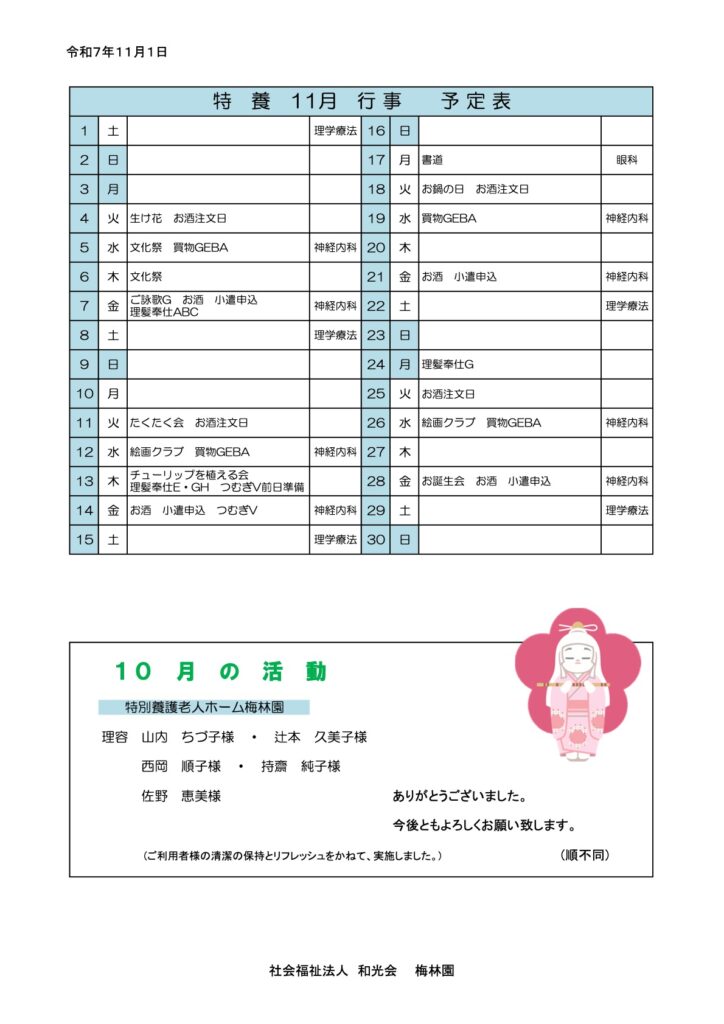 後は、梅林園に連れて帰り、文化祭までにご利用者様や
