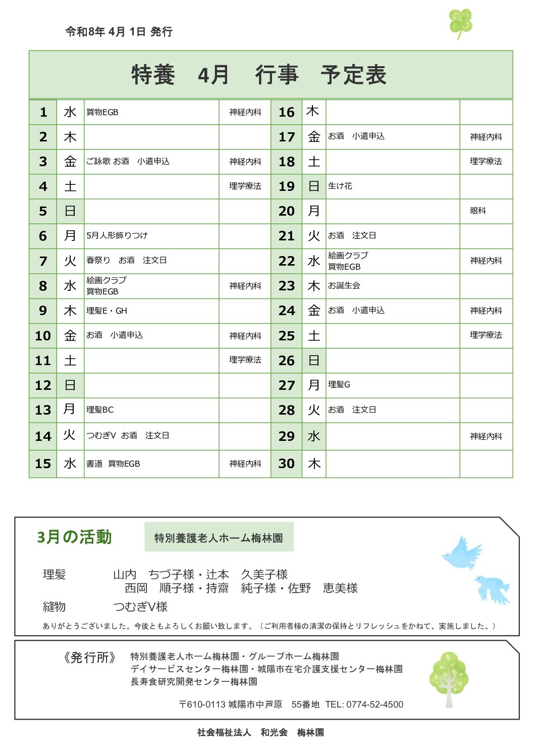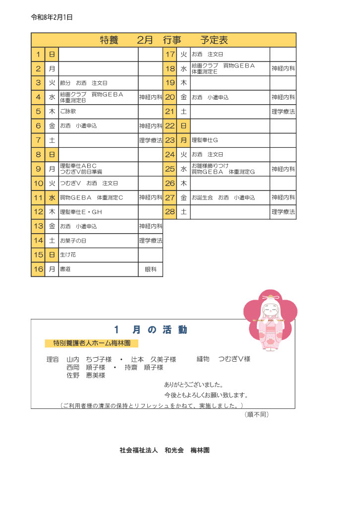 入居老人の方、及び職員同士が、互いに人格ある人間として尊い、協力する心を持たねばならない。