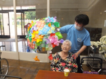 担当栄養士の飯蔵さん、ご利用者様に喜んで
