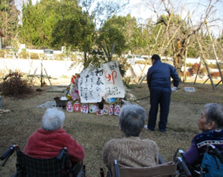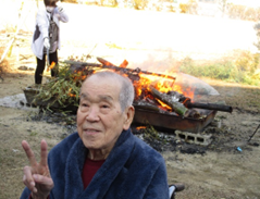 園のたくたく広場にて、どんど焼き(左義長)が行われ