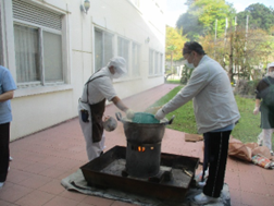 中庭では、園長中心に豚汁作りに奮闘中!!