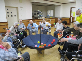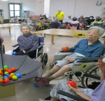 6月にちなんで “梅雨を吹き飛ばすレインボウ玉入れ”