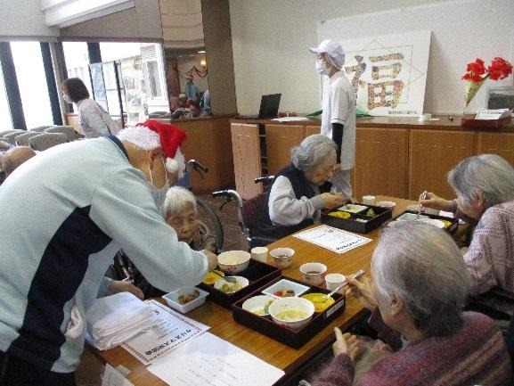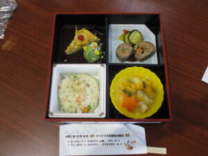 栄養管理部特製のクリスマスのお弁当を食べて頂きました。