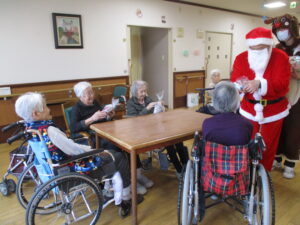 午後からは、サンタさんが、各居室を回ってクリスマスプレゼントをお1人お1人りにお渡しさせて頂きました。