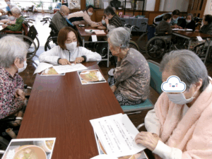 皆さんでクイズをしながら、豚汁が出来上がるまで待つ