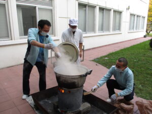たくたく会とは、災害時の炊き出しの練習もかねて行っ