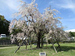 梅林園の一番奥に、たくたく広場という大きな枝垂桜