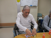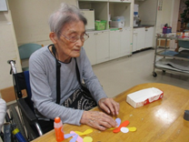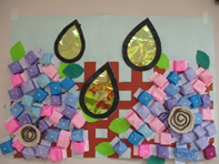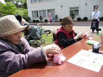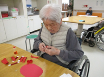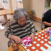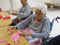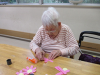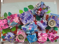 おりがみクラブでは紙を丸めてアジサイ作り☆