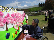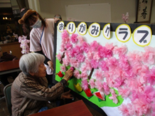 おはながみを広げて桜の花びらを作ったり、