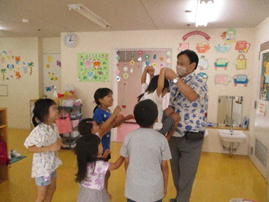お誕生日プレゼントのお渡しです。 Posted on 2020年9月11日 | by 梅林園 梅林園には「子育て支援ルーム」があります。職員が安心して働ける環境づくりとして託児所を設けています。 お誕生日の児童には、園長からプレゼントが☆ 今月のお誕生日はふたり、園長がプレゼントを渡しに行くと… つぎーつぎー、もういっかい!と引っ張りだこの園長。このあとへとへとだった大人気の園長でした。 子育て支援ルームより