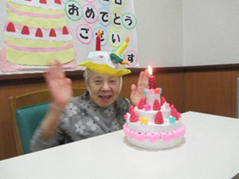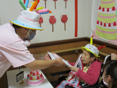 当日誕生日の方もおられ、みかんケーキを食べながら利用者さん皆で歌を歌ってお祝いしました。