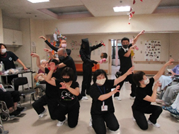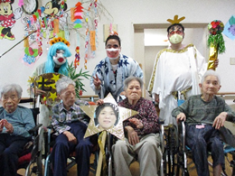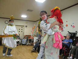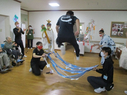 踊りあり、歌あり、笑いあり、涙ありのショーで、天の川を織姫が飛び越えるシーンでは、利用者さん達が手に汗を握り、「がんばれー」「ひえー」「あっきったー」と様々な声援が飛び交いました。